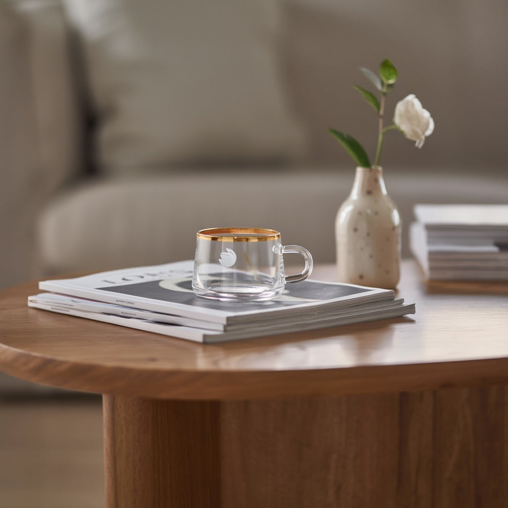 ☕ Elegant Design – Crafted from premium crystal-clear glass with a dazzling gold rim, exuding timeless sophistication and luxury 💛🌿