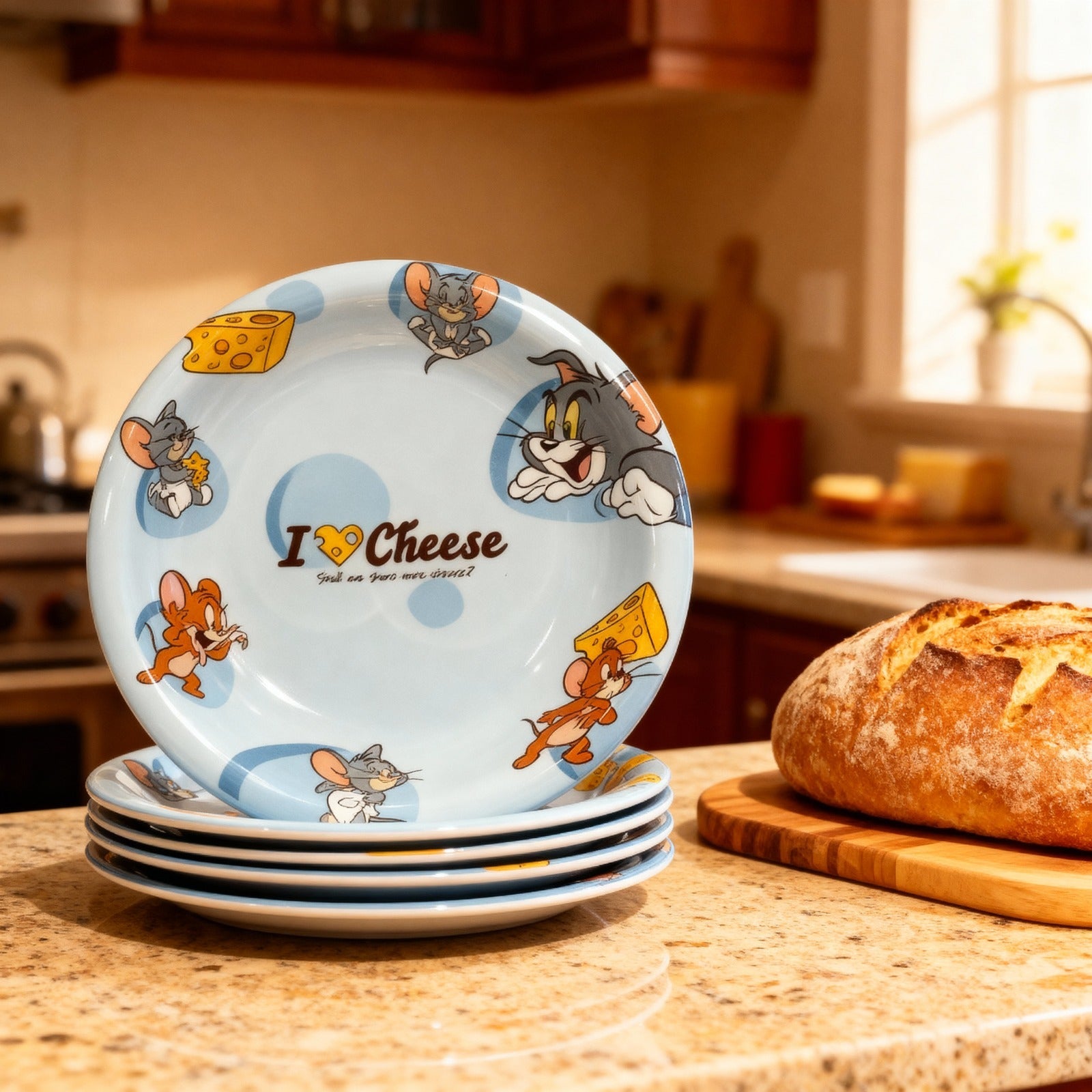 🍽️ Adorable Cartoon Design: Each plate shows Tom & Jerry in fun, cheese-chasing poses — ideal for fans who love nostalgic cartoon charm and playful kitchenware.